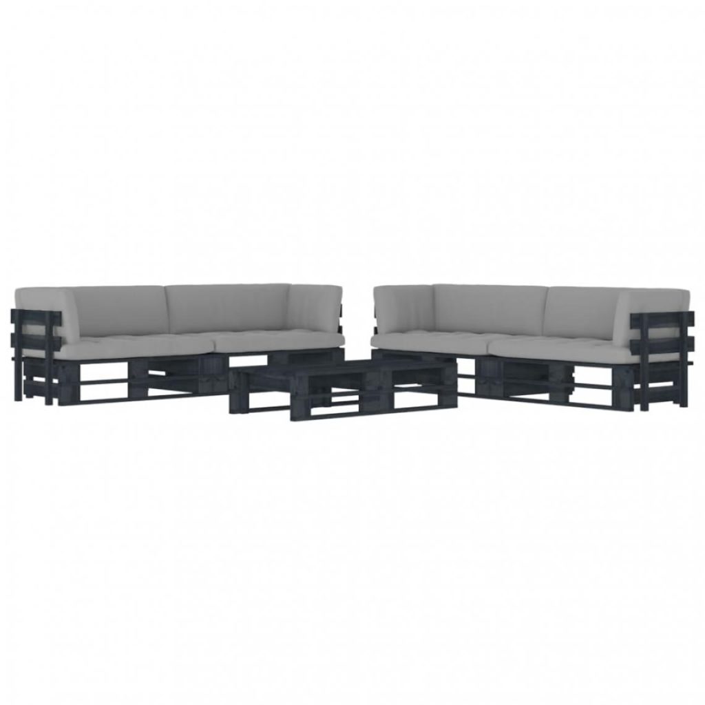 Salon de jardin palette 6 pcs et coussins Pin imprégné de noir
