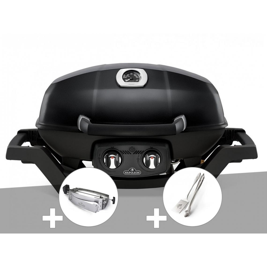 Barbecue à gaz Napoléon Travel Q PRO 285 noir + Rôtissoire + Ensemble 2 ustensiles