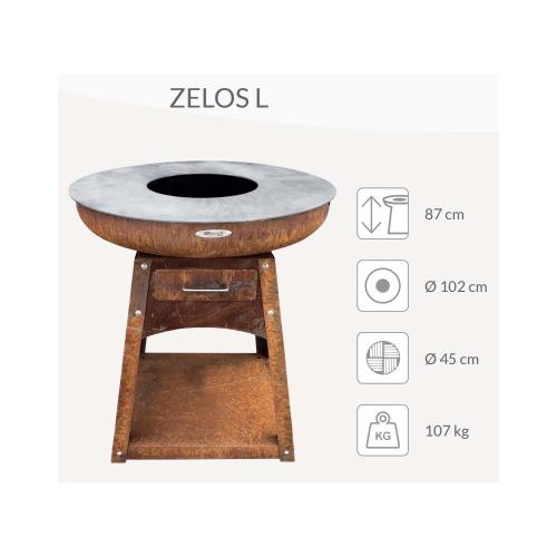 Points forts Remundi Barbecue brasero en acier Zelos Hauteur 87 cm Diamètre 102 cm.