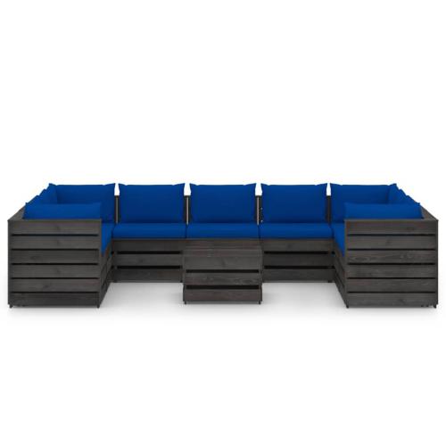Salon de jardin 10 pcs avec coussins Bois imprégné de gris