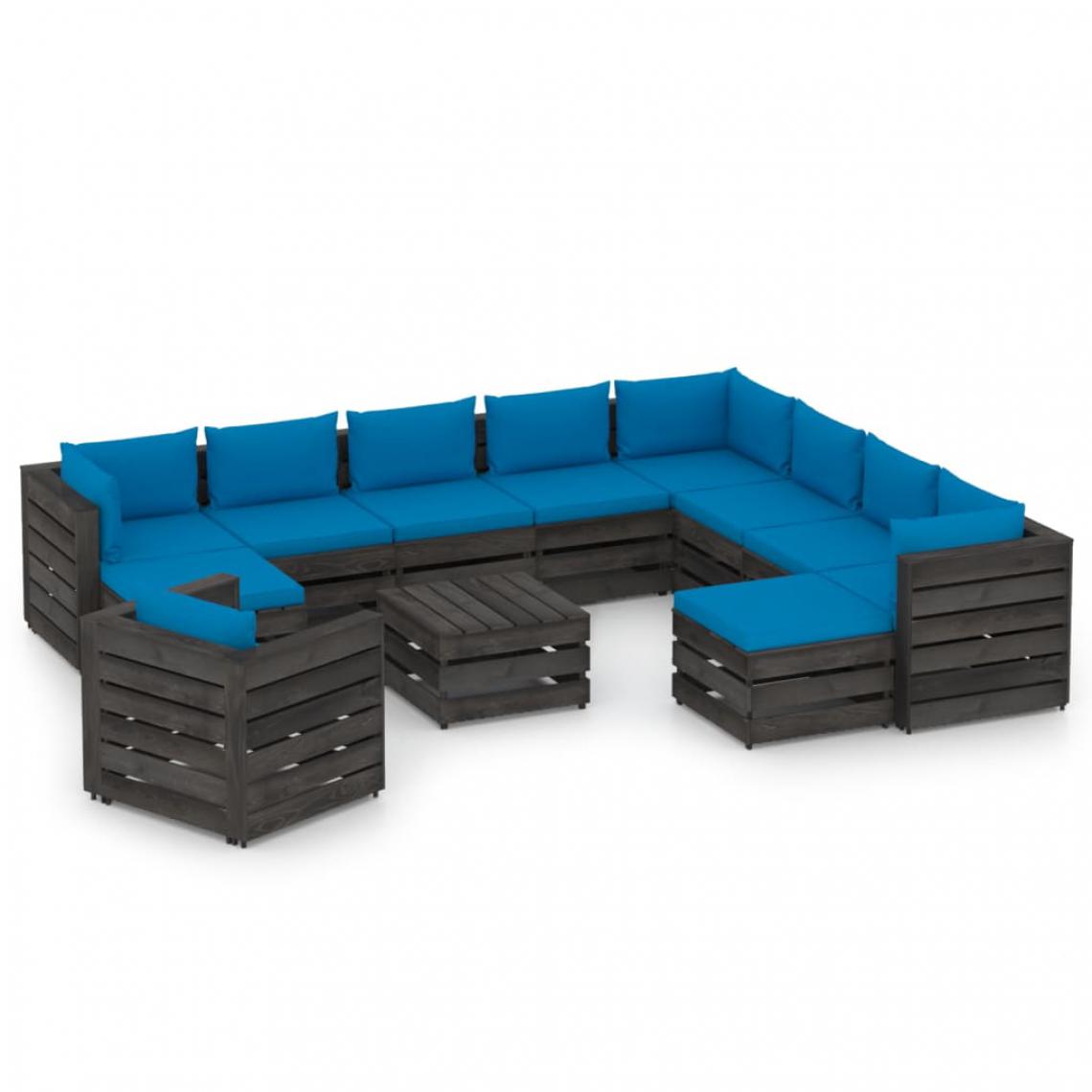 Salon de jardin 12 pcs avec coussins Bois imprégné de gris