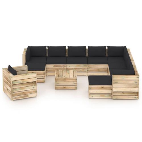 Salon de jardin 12 pcs avec coussins Bois imprégné de vert