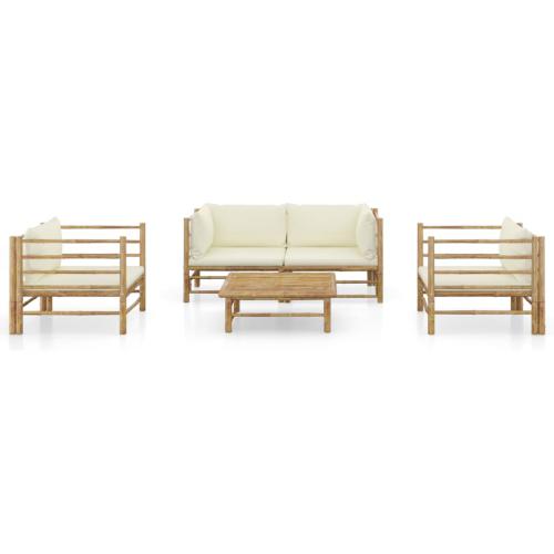 Salon de jardin 5 pcs avec coussins blanc crème Bambou