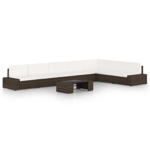 Salon de jardin 8 pcs avec coussins Marron Résine tressée